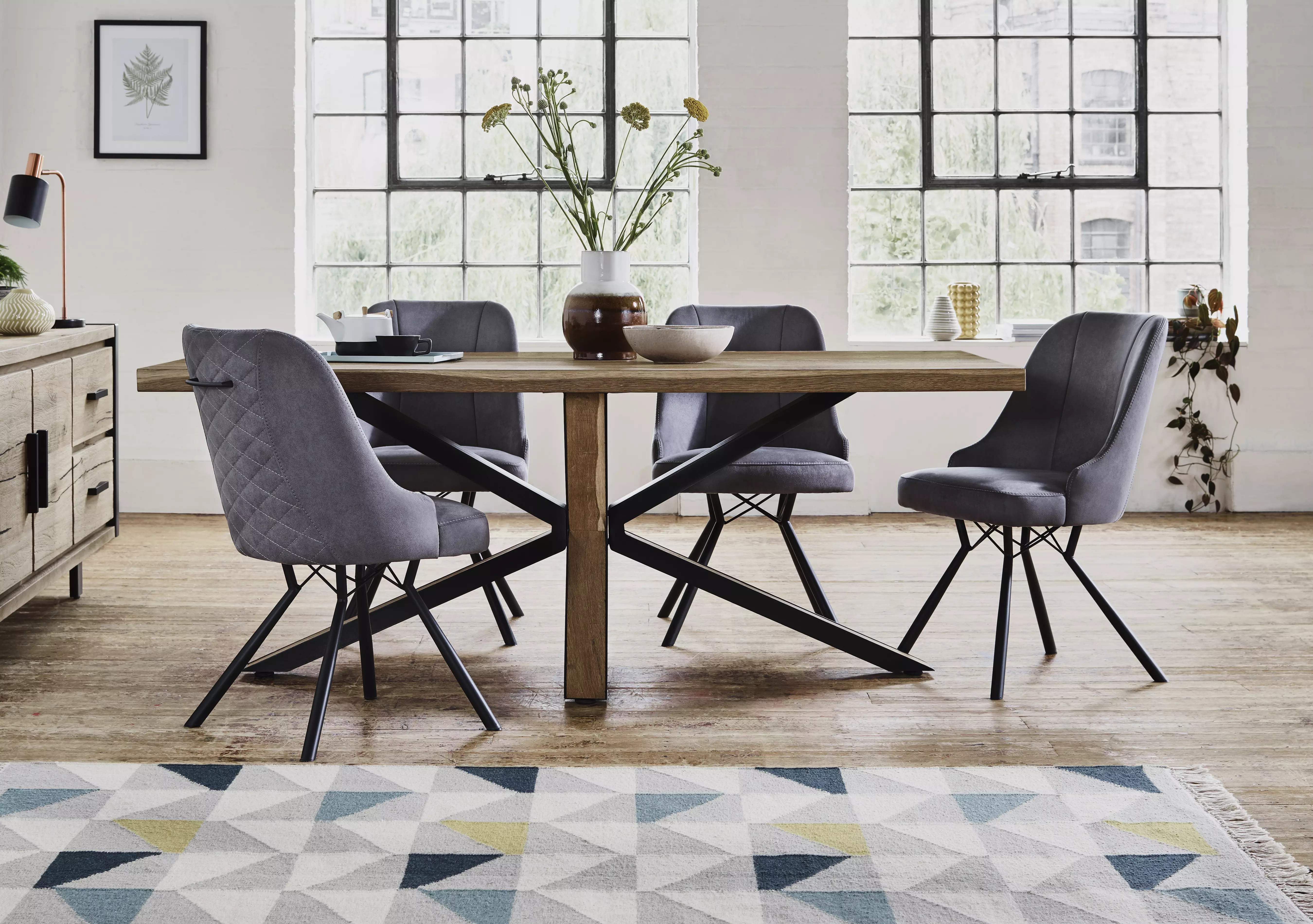 Detroit 200cm Starburst Leg Table And 4 Panay Chairs Habufa Furniture Village