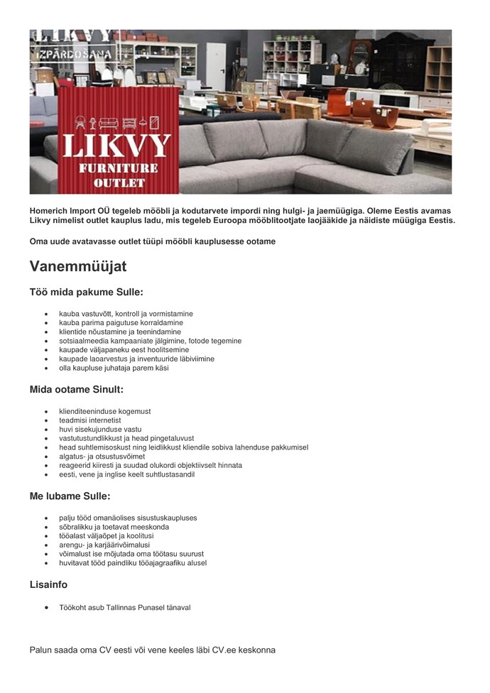 Toopakkumine Vanemmuuja Homerich Import Ou Cv Online